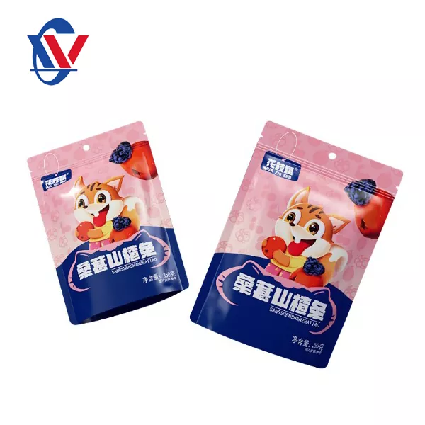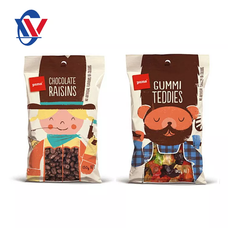 Bombono kaj ĉokolada paka sako kutime uzas plastajn materialojn, kiel polietileno (PE) aŭ polipropileno (PP). Ĉi tiuj materialoj havas bonan sigeladon kaj humidecan reziston, kaj povas efike protekti dolĉaĵojn kontraŭ humideco kaj malhelpi adhesion. Krome, iuj altnivelaj produktoj povas uzi kolor-presitajn pakajn sakojn por pliigi la apelacion kaj merkatan valoron de la produkto.
